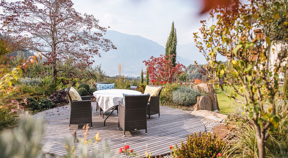 Viel Freiraum und Natur: Das erste Versprechen ist unsere einzigartige Lage mitten im Grünen von 45.000 qm hauseigenen Apfelgärten, abseits der hochfrequentierten Tourismusorte. Dennoch sind Sie in nur wenigen (Fahr-) Minuten im Zentrum von Meran.